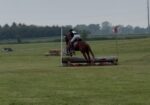 Wesley shows and schools on and off property the same. He has been to multiple mini events the past two seasons. He also has done many dressage shows and always places in the low 70%. He loads like a dream and stands tied to the trailer with no problems.