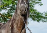 Kiah is our resident heart-stealer and peppermint thief. A striking Friesian mare with a name that means “new beginning,” Kiah came to us with both a remarkable pedigree and a bittersweet past. She was lovingly raised by an owner who adored her deeply, but sadly passed away after a long battle with cancer. Though Kiah didn’t receive the early formal training most horses her age would have, her gentle temperament and eager-to-please attitude have helped her bloom beautifully in recent months.