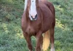 Just like my name Bella, I am a beautiful, 17hh, sorrel Belgian mare.  I have been with my BFF, Cream, for a long time.  We grew up and trained together.  We even had offspring in the same year.  I have been ridden but like most of my skills, I am rusty.  I do have a hind leg that likes to swell up on and off.  Not sure why.  It really does not bother me.  Cream and I do need our hooves trimmed.  We both prefer stocks.  We are a lot to hold up on three legs.  We were getting a little thin but have been at the neighbor’s enjoying her pasture and putting on weight.  We look good!!  In fact, beautiful!  We would love to meet you in Hudson, WI.  I think you will want to take us home!