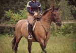 Smarty lives up to his name. He is a genius. He learns things, good and bad, in a single fell swoop. Therefore, he is in no way, shape or form a beginner’s horse. Although we have used him to longe beginners in teaching them to ride. He is stout, sound, sane; up-to-date on everything, freshly shod. First time I free-jumped him he took my breath away. Knees up around his ears. He is bold enough to be an Extreme Cowboy Race horse, quick enough to play polo. He could check an opposing mount all the way to the boards, no problem. You could take him whatever way you wanted to go. I had a car wreck; I broke my back in four places; I may never ride again. He is too nice to sit here and rot. My loss will be your gain.